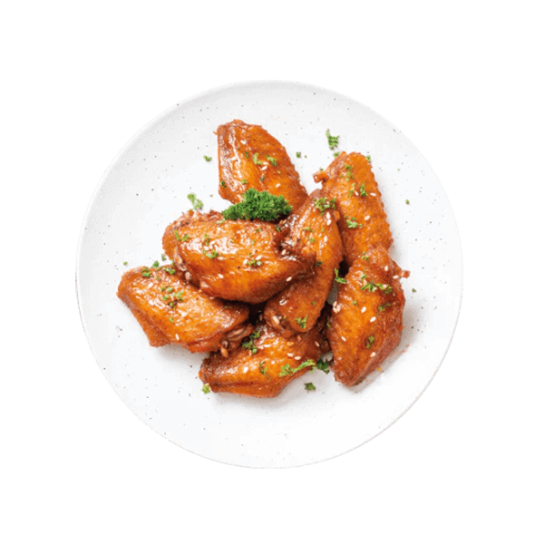 € 12 (Alas de pollo bañados en salsa BBQ/papas fritas/ coleslaw)