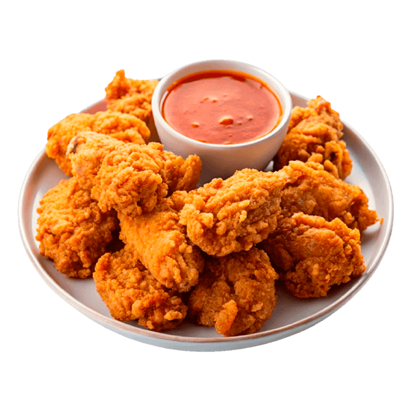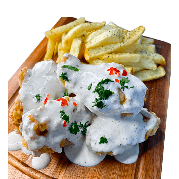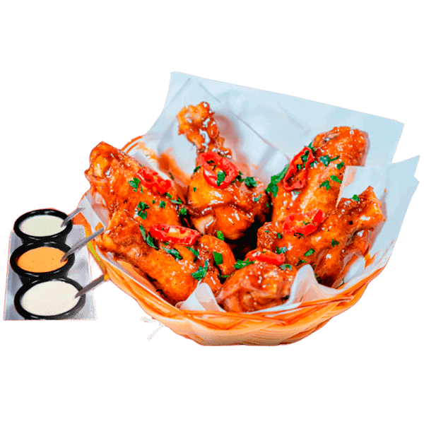 € 12 (Alas de pollo bañados en salsa picante/papas fritas/ salsa picante/coleslaw)