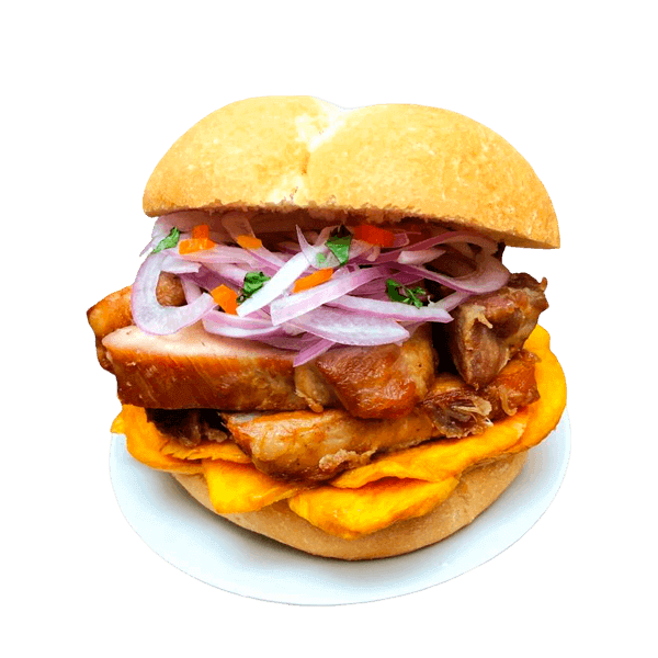 € 7 (Pan/panceta de cerdo/camote frito/salsa criolla)