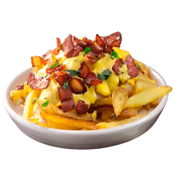 PAPAS FRITAS GRATINADAS CON CHEDDAR Y TOCINO