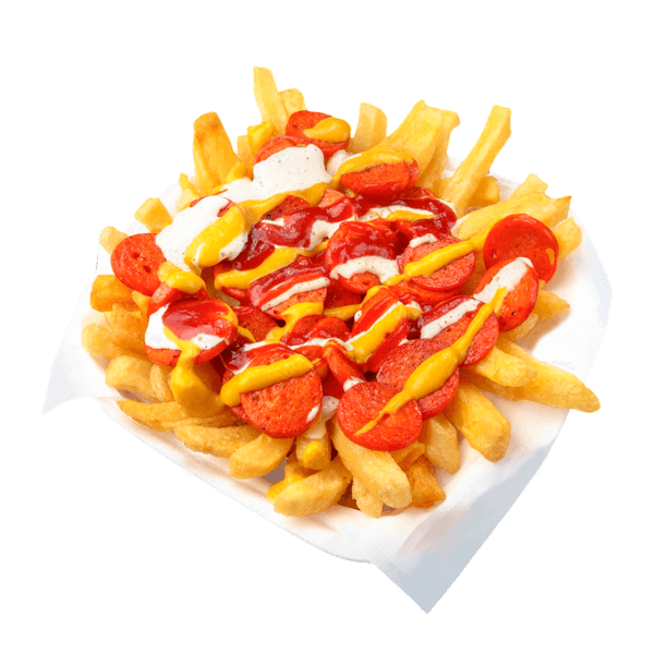 € 12 (Papas fritas, hot dog, pollo, chorizo, huevo)